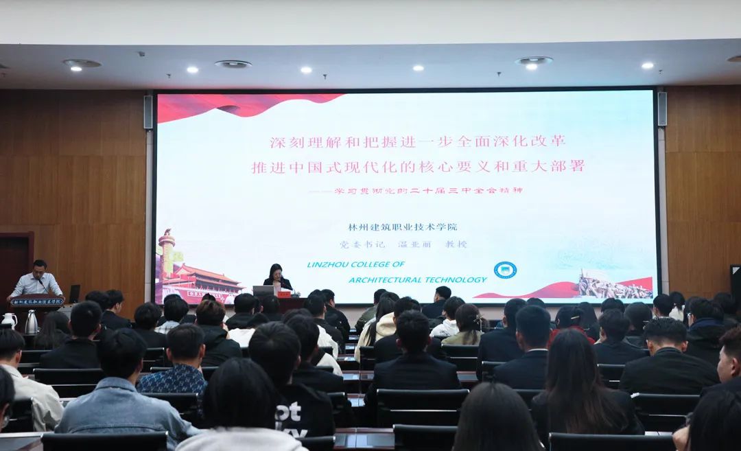 仪式结束后,党委书记温亚丽以《学习贯彻党的二十届三中全会精神》为主题做开课第一讲。