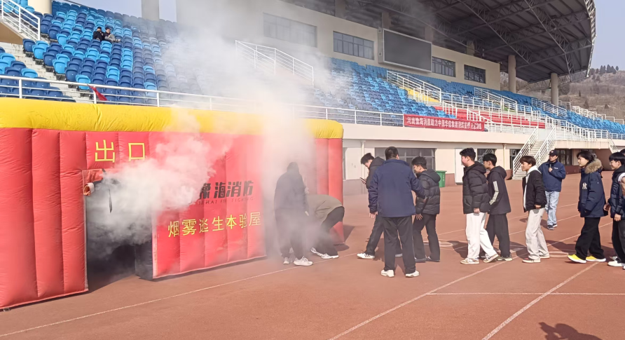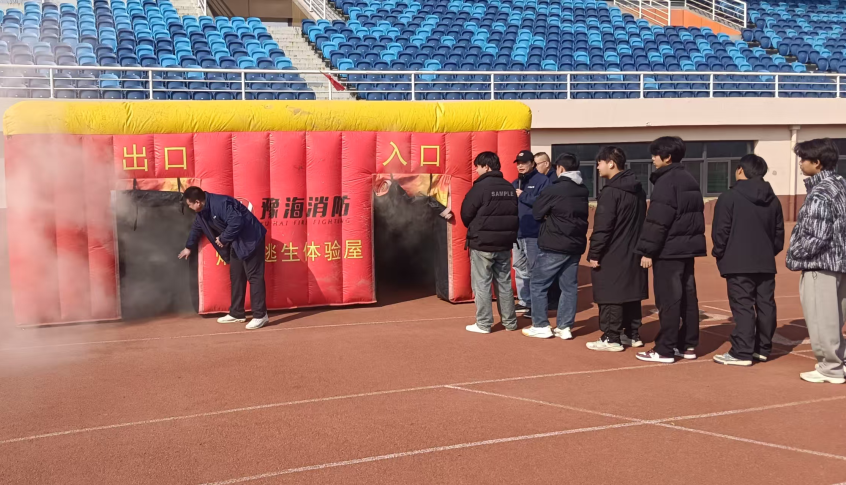 本次活动中利用充气烟雾屋模拟发生火灾后在黑暗、浓烟滚滚的环境中如何正确迅速且安全地逃生,活动中参与学生兴趣浓厚,积极参与,按照所学习的低姿前行、湿毛巾捂住口鼻等逃生技巧有序撤离。这种实战演练使学生能够亲身体验,在体验中运用掌握火灾逃生技巧。通过此次消防演练,让参与师生更直观更深刻地认识到大火的无情与危险,也意识到火灾隐患的危害性,既要做到预防,提高安全防范意识,又要熟练使用消防器材,第一时间救火自救,锻炼安全逃生技能。