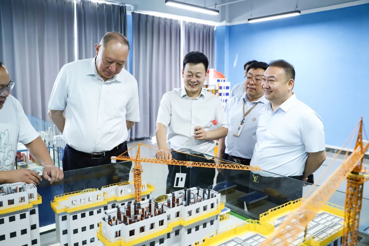 仪式上,任锋、张贵鹏、靳晓锋、谷建光、张清华共同为“红旗渠工匠”产教融合实践示范基地及林州市建筑人才服务中心揭牌。标志着林州校企合作迈入新阶段,教育与产业深度融合开启新篇章。揭牌仪式后,领导嘉宾、企业代表等进行了合影留念,智能建造学院与企业家代表于211会议室举行了校企合作座谈会,其他领导嘉宾对林州建院实训室、图书馆进行了实地考察。