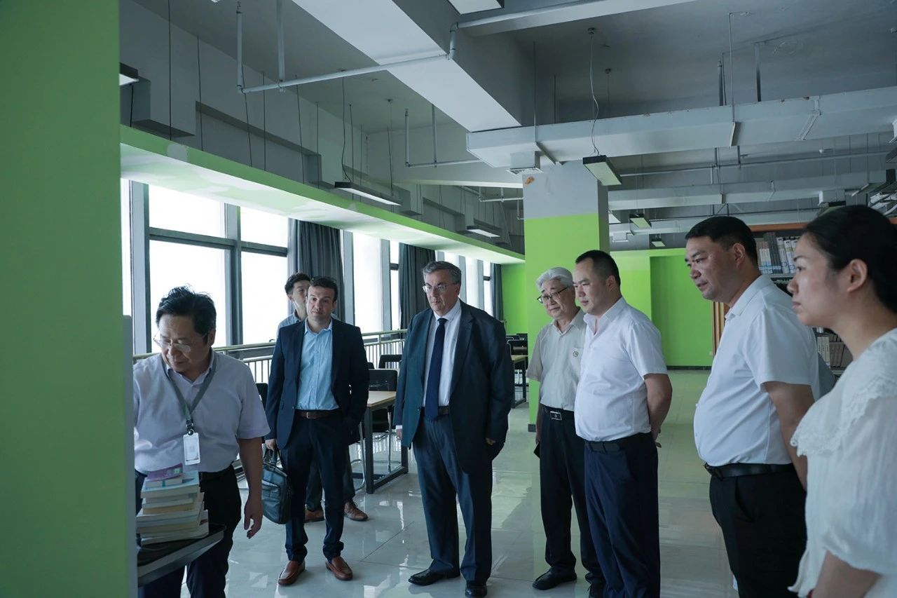 座谈会前,潘泰利斯·斯克利亚斯一行实地考察了林州建院实训室及图书馆,座谈会上,与会人员共同观看了中原华信控股集团、林州建院及那波勒斯大学的宣传片,通过影像进一步了解双方在办学理念、学科优势等方面的契合点。