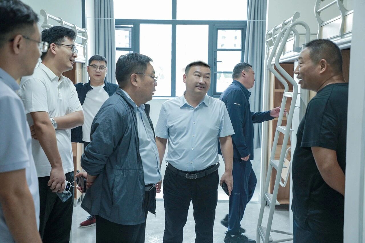 调研首站聚焦新建学生宿舍,谷建光一行深入新建宿舍楼宇,实地检查施工收尾进度、公共区域与房间卫生状况,细致查看床铺、桌椅、水电设施等配备情况,重点围绕学生住宿安全、生活保障细节与宿舍负责人深入交流,详细询问新学期入住安排、应急管理预案及生活服务保障措施。“宿舍是学生在校生活的‘第二家园’,更是落实立德树人根本任务的重要阵地。”谷建光强调,要始终坚持“以生为本”,既要确保宿舍环境整洁、设施功能完善,更要强化日常管理与安全巡查,从细节处为学生营造安全、温馨、舒适的居住环境,让学生在校住得安心、学得用心。