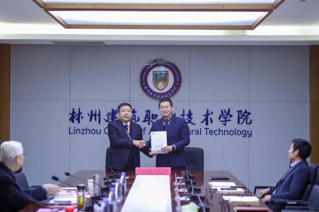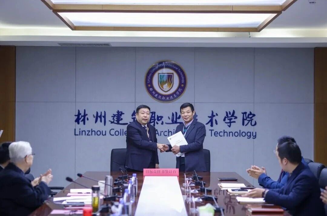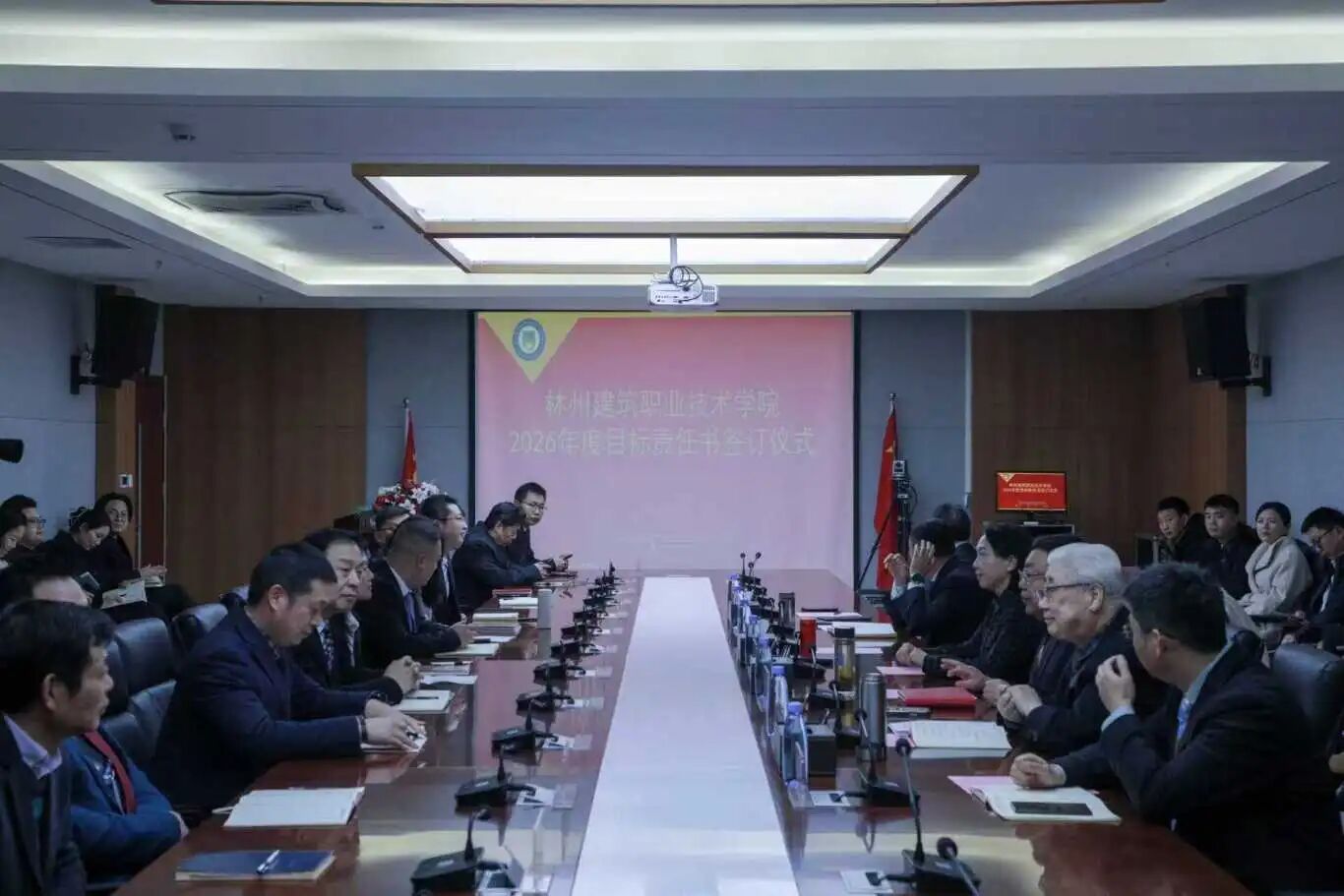 会上,副校长徐春华宣贯了2026年考核方案,党委副书记、副校长郭鹏宣读了2025年考核结果的表彰决定。各单位负责人与学校签订了年度工作目标责任书,教学工作部主任吴亚亚、智能建造学院院长岳龙龙、党务工作部部长申振苹作为代表进行了表态发言。