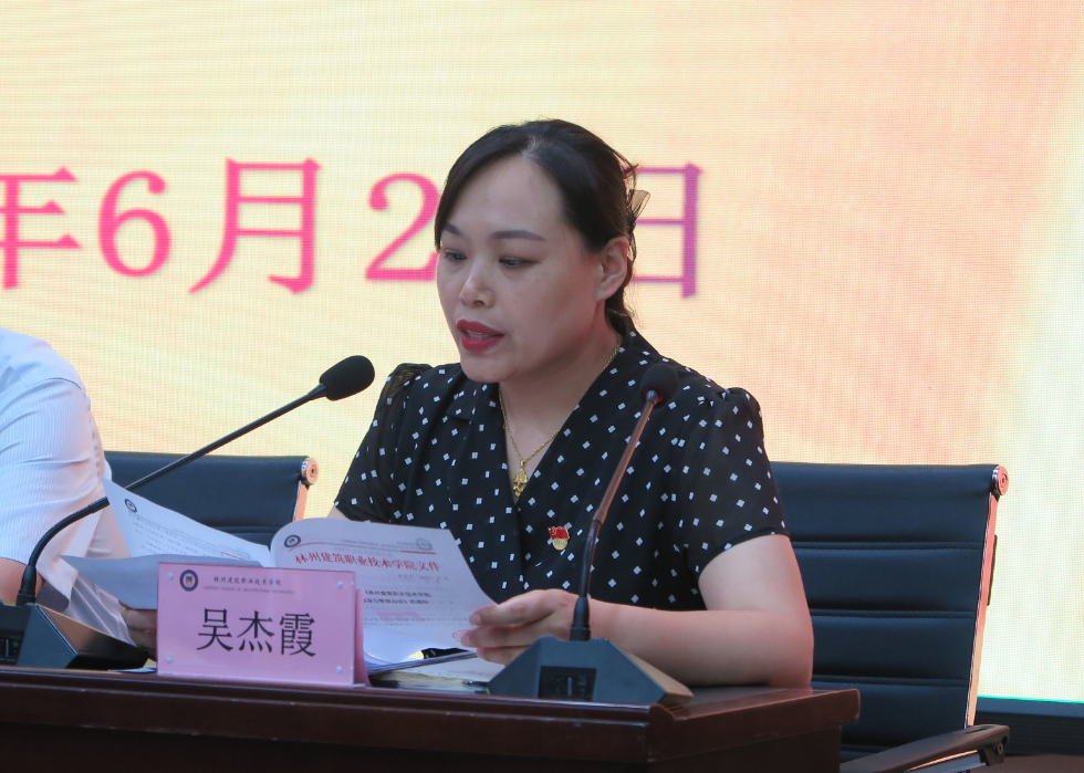 副校长吴杰霞宣读学校宣传工作和意识形态工作相关文件。