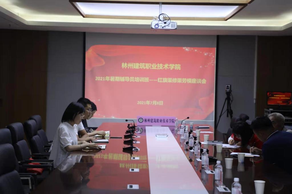 7月8日上午,我校在行政楼会议室组织召开2021年暑期辅导员培训班,此次培训有幸请到红旗渠修渠劳模张买江、郝顺才、郭秋英、李海金出席座谈会,全体辅导员参加了此次座谈会。