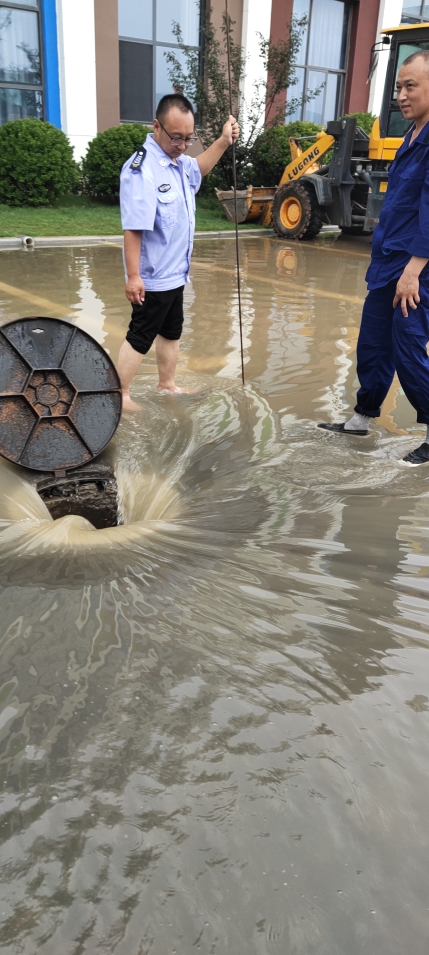 后勤处组织人员冒雨对各区域进行全面检查,排除故障,疏导积水,保证学校排水系统正常有效
