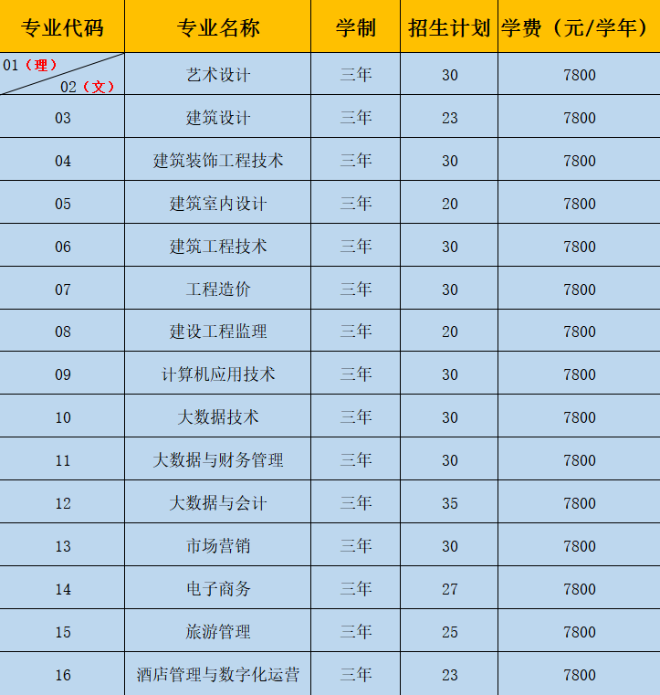 2021年普通专科(文、理科)征集志愿一览表