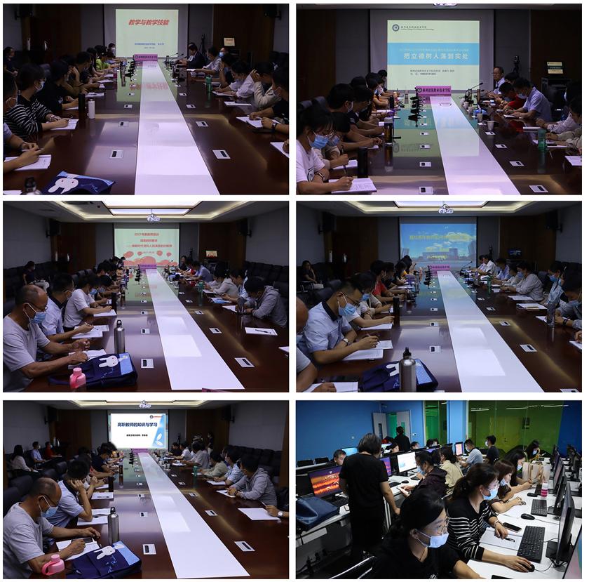 在专题培训阶段,思政教学部主任孙继军教授以“把立德树人落到实处——学习贯彻习近平学校思想政治理论课教师座谈会讲话和庆祝建党100周年讲话精神”为题,对参训教师进行了教师职业道德和思政培训;中专部主任吴洁教授以“提高教师素养——做新时代党和人民满意的好教师”为题,进行了教师职业素养的专题培训;教务科研处副处长李根全教授进行了“高校青年教师如何做好科研工作”的科研专题讲座;建筑工程系李保霞副教授进行了“高职教师的知识与学习”的专题讲座;宋太平教授进行了“备课技能(教案编制)”的教学技能专题讲座;基础教学部闫俊娜副教授进行了“如何使用钉钉平台上网课”的专题讲座和训练。这些讲座对新教师的帮助颇多,希望新教师能不断反思、积累、历练、成长。