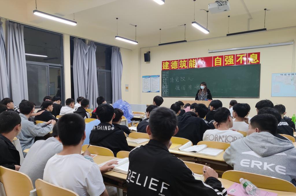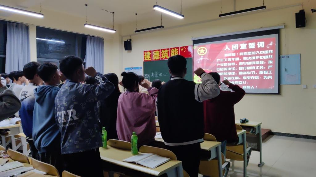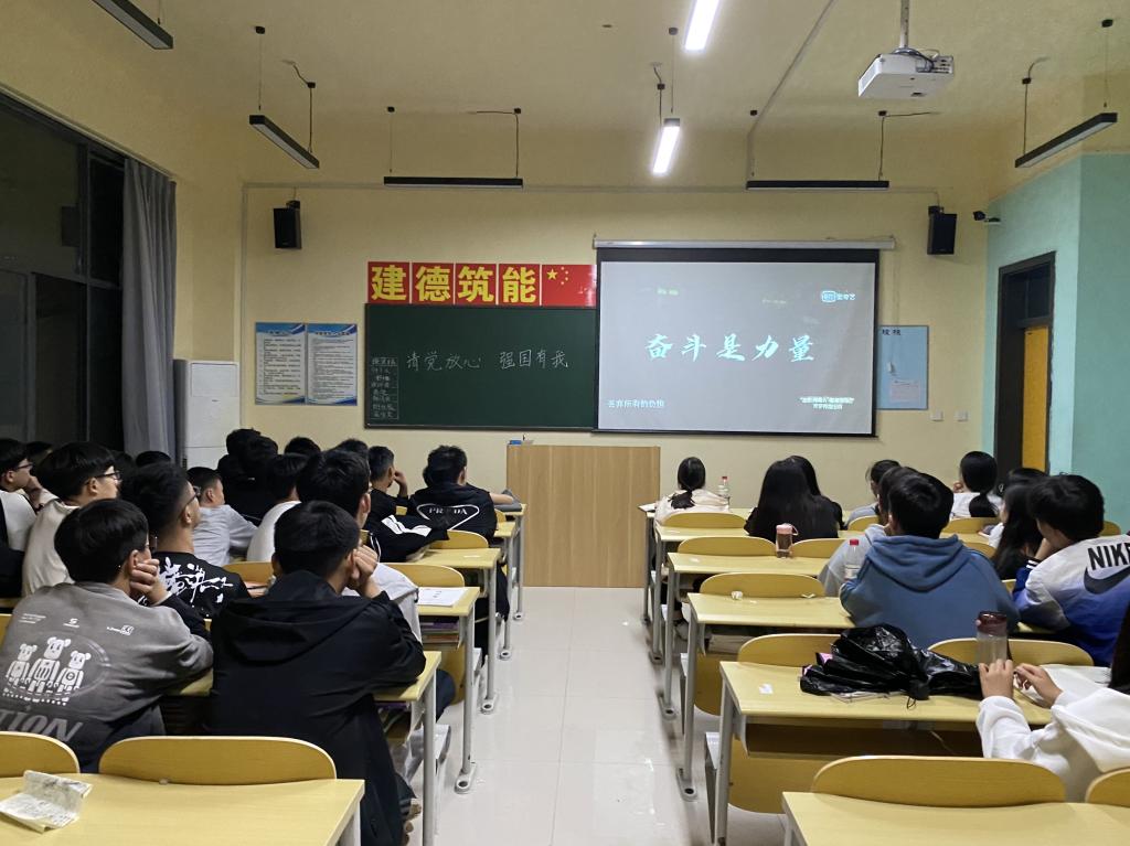 各班辅导员老师带领大家回忆了上学期以来举行或参加的系列教育活动:“颂党恩、感党情”主题演讲比赛、“学百年党史、做时代青年”PPT制作比赛、挑战二十一天读书活动、参观国家863红旗渠科技产业园、参加学校春季运动会、“乒出干劲、博出精彩”乒乓球比赛等活动,将活动意义与同学们成长的关系进行了讲解,随后组织同学们认真观看了纪录片《出彩河南人》,最后在团员们重温入团誓词中结束了本次活动。