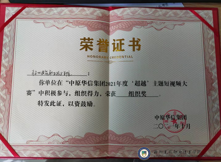 (图文/崔阳)10月27日下午,记者在中原华信集团2021年度“超越”短视频大赛总决赛现场获悉,我校参加的作品《稳步发展 超越自我》短视频荣获大赛“组织奖”。