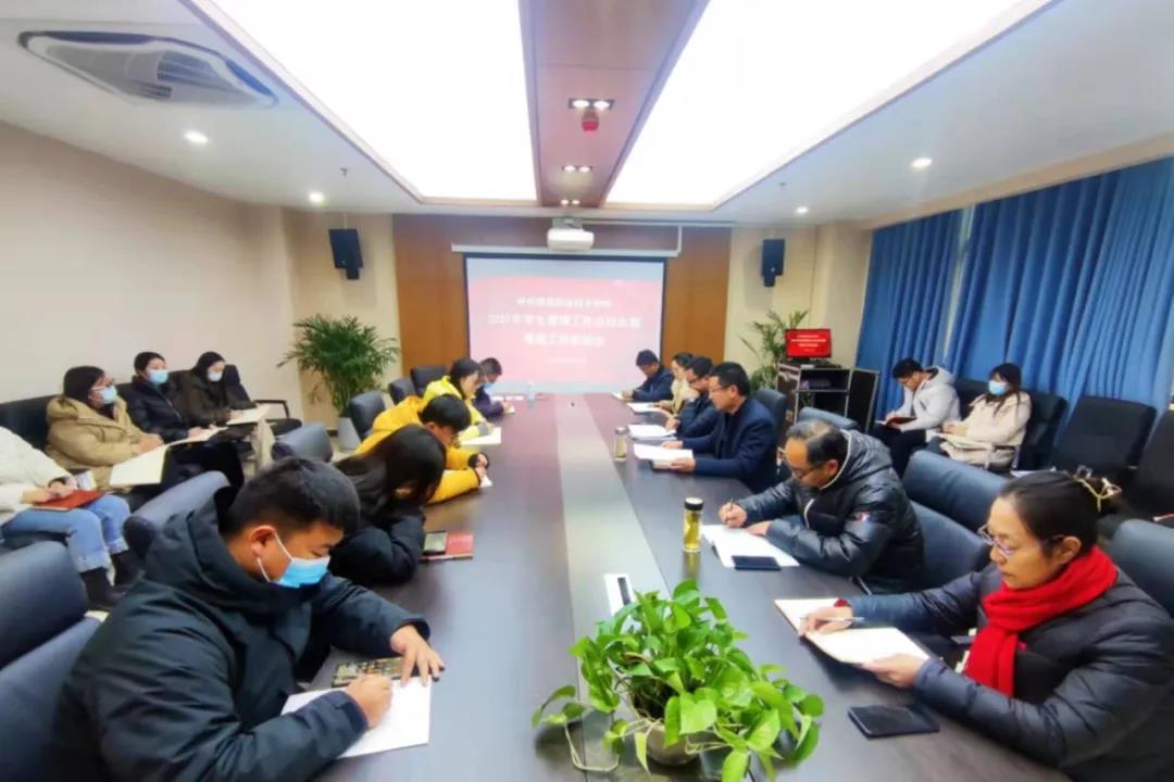期末将至,为进一步做好学生管理总结考核工作,同时保障冬季校园安全,站好学生离校前后最后一班岗,12月23日下午三点,学工部在行政楼215会议室召开了2021年学生管理工作总结会暨寒假工作安排会。校党委副书记、副校长晏祎,学生处处长郭鹏,学生处副处长(兼团委书记)崔阳,学生处副处长王更生,建筑工程系副主任王茜,中专部副主任李峰等出席了会议,学生处及全体辅导员参加了会议。会议由晏祎主持.