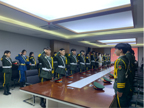 为深入推进爱国主义教育活动的有效开展,从2021年10月初开始,学工部和校团委筹备组建国旗护卫队,经过学生自愿报名、面试考核、日常训练等环节选拔,最终确认36人为我校首届国旗护卫队正式成员。