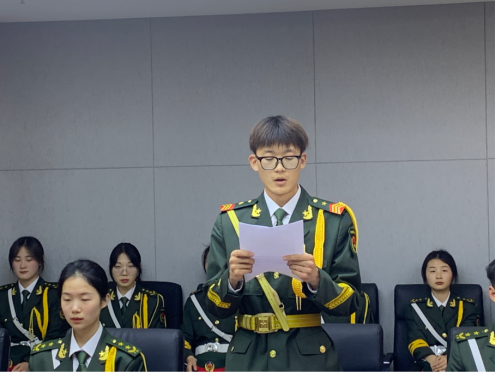 赵泉同学作为国旗护卫队第一任班长做了交流发言,他说,国旗护卫队是一个光荣的集体,以护卫国旗为使命,以弘扬爱国主义精神为己任。飒爽英姿展现的是我们林建学子的青春风采,我们要以青春之热血,护国旗之荣光。对于我们个人而言,国旗见证着我们训练成长的历程,它代表着一种荣誉和责任。