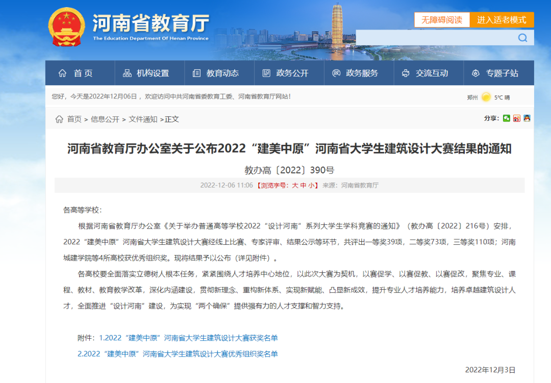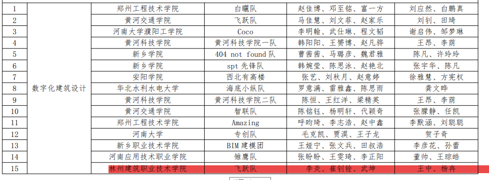 近日,由河南省教育厅举办的2022“建美中原”河南省大学生建筑设计大赛落下帷幕。我校智能建造系学生在校长郭长庚和副校长晏祎的亲自领导下,智能建造系主任王中组织、系部教师岳龙龙、杨冉、李海凤、李娟娟、陈洋平、秦煜凯、郭振超等带队指导下,认真研读比赛细则、科学制定参赛计划、严格刻苦开展训练,经过四个多月的高强度训练,最终不负众望,获得一等奖1项,二等奖4项,三等奖1项。
