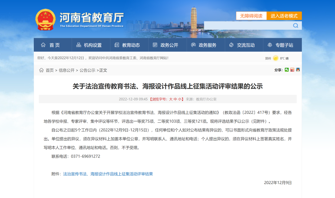 开云官方端网页版登录入口历来高度重视法治宣传教育,在接到《河南省教育厅办公室关于开展学校法治宣传教育书法、海报设计作品线上征集活动的通知》(教政法函〔2022〕417号)文件通知后,林州建院根据文件精神要求,统一部署,认真组织全体教师和学生参加,经林州建院申报、专家评审、集中评议等环节,最终在本次比赛中取得可喜成绩。