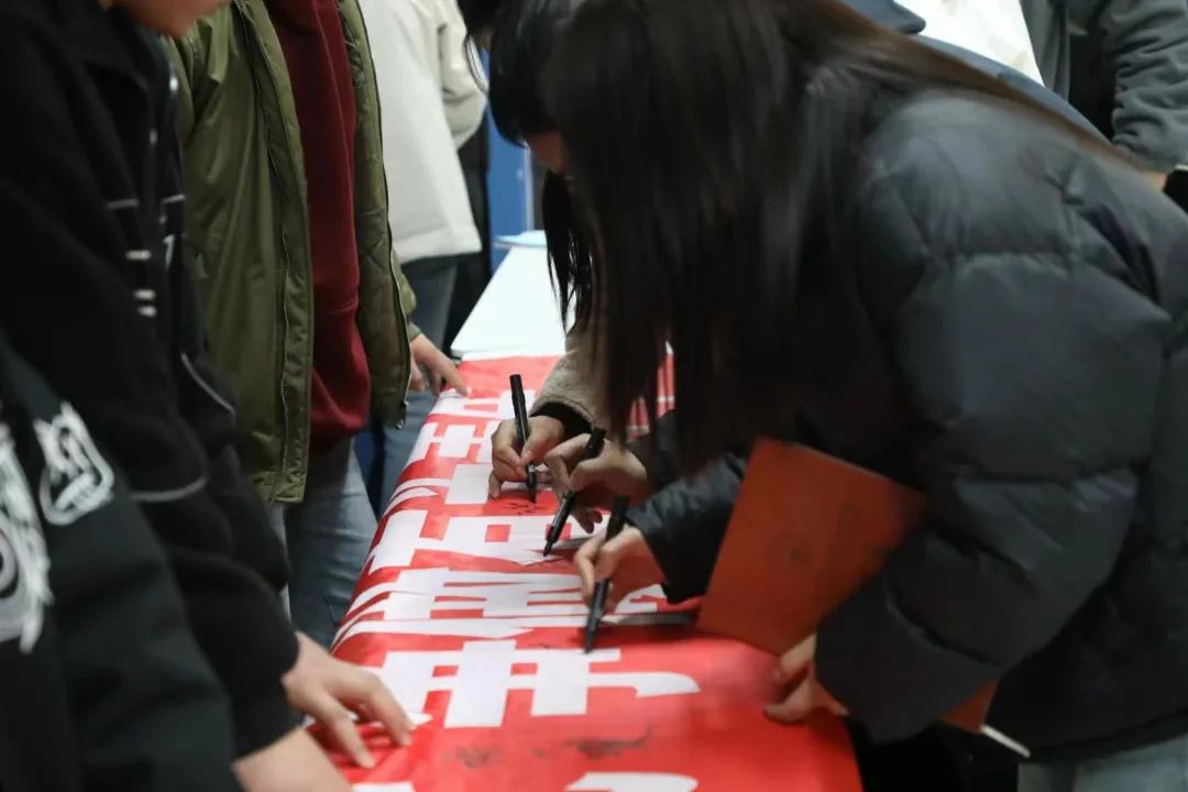 整个授课以圆桌面谈的形式开展,拉近了与教师、学生的距离。学生代表积极发言,郭校长与教师代表们耐心解答学生提出的问题,现场气氛轻松热烈。授课结束后,全体师生在“不负可为时代,争做有为青年”主题条幅上签字留言。