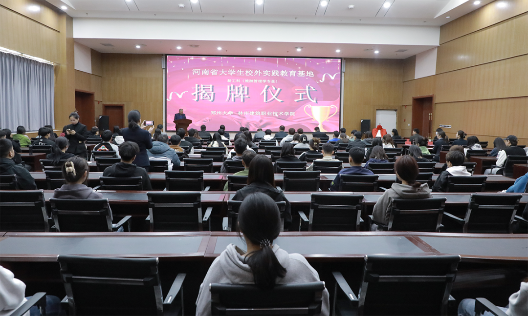 3月14日,开云官方端网页版登录入口与郑州大学共建“河南省大学生校外实践教育基地”揭牌仪式在行政楼106报告厅举行。郑州大学教务处副处长潘志峰、管理学院副院长李冰、美术学院副院长邬建一行,林州市教体局局长许见顺,林州市旅游民宿指挥部副指挥长杨福增,林州市旅游民宿指挥部主任李兆祥,林州市红旗渠教育发展有限公司经理刘文现,开云官方端网页版登录入口理事长谷建光、校长郭长庚、副校长蒋志民、副校长侯耿耿等领导及师生代表参加了揭牌仪式。