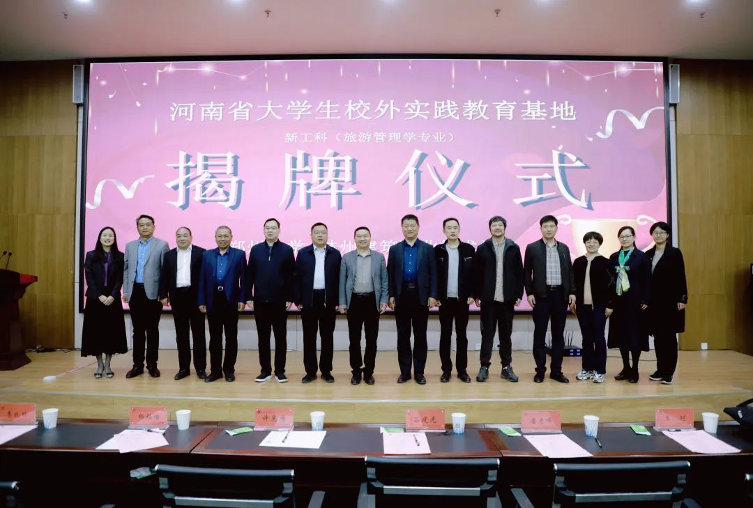 最后,郑州大学潘处长、李院长,林州市教体局许局长、林州市旅游民宿指挥部杨指挥长、林州建院谷理事长、蒋校长共同进行揭牌仪式。至此,林州建院与郑州大学共建“河南省大学生校外实践基地”揭牌仪式圆满成功。