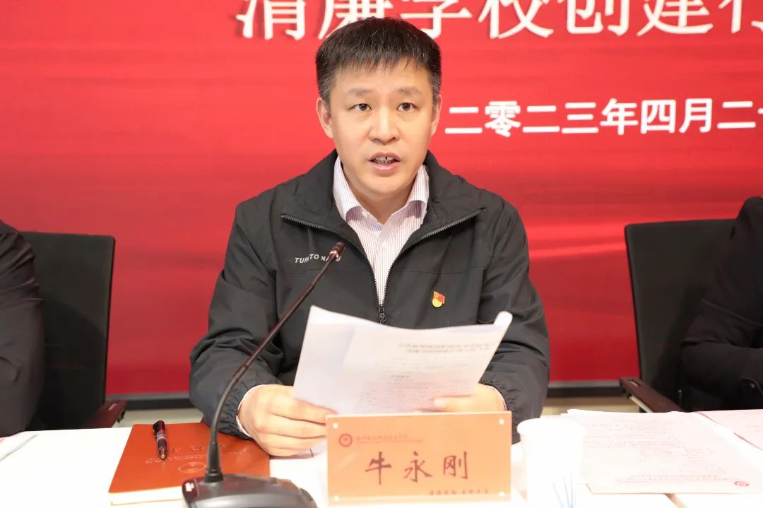 会上,党建指导员、党委副书记牛永刚宣读了《开展“学习新思想,奋楫新征程”学习宣传贯彻党的二十大精神主题宣传教育活动》实施方案及《中共开云官方端网页版登录入口委员会清廉学校创建行动》工作方案,并结合我校近两年全面从严治党的实际情况,对学校2023年党建重点工作及清廉学校创建行动工作进行了安排部署。