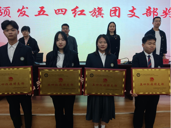 参会领导向获得表彰的五四红旗团支部、优秀班集体、优秀共青团干部、优秀共青团员和三好学生颁奖。