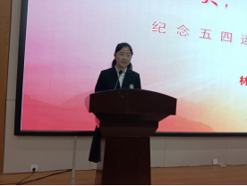 副校长侯耿耿在会议最后作总结讲话。她从现场感受到的青春朝气入题,分别从“目标”、“青春”、“榜样”、“感恩”四个方面,阐述了自己的理解,并与现场学生进行了互动,让学生从内心深处思考人生应该有什么样的目标,自己的青春应该如何度过,榜样的力量是什么,我们应该感恩的人是谁等。侯校长对广大团员提出了殷切的希望,她希望同学们要感恩父母、感恩老师、感恩自己,并鼓励大家要明确人生理想,高扬理想风帆,不负青春韶华,努力练好人生和事业的基本功,继承五四传统、传承五四精神,担负时代使命。