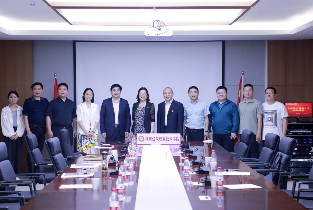 会后,郑州大学翟彧一行与林州建筑职业学院校领导班子及中层干部进行合影留念。
