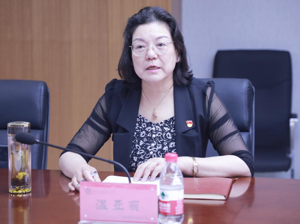 党委书记温亚丽对翟彧一行来访表示热烈欢迎。她简要介绍了学校历史沿革、发展历程、学科专业特色等情况,并希望以本次考察为契机,切实加强郑州大学对学校的交流指导,学习郑州大学在教育教学等方面的先进经验,进一步将合作推深走实。