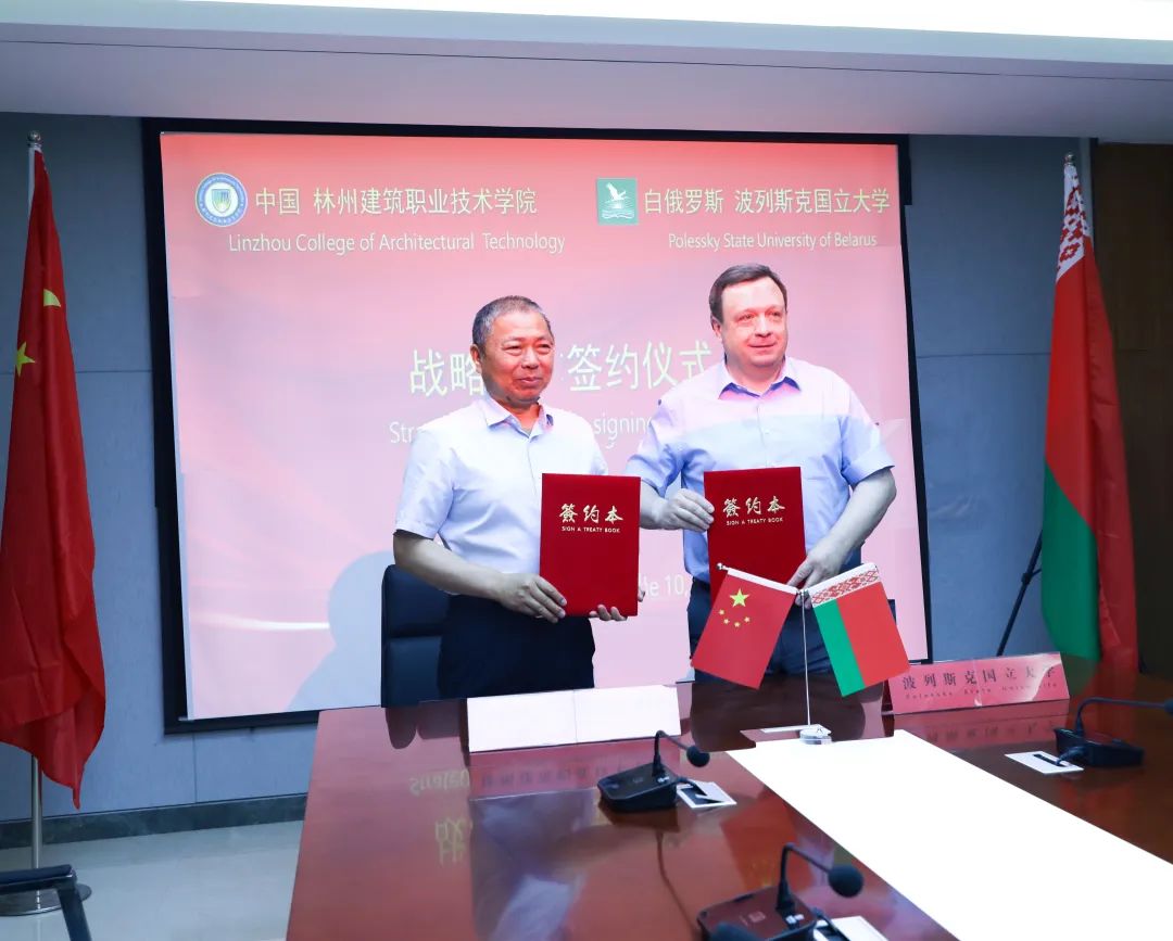 交流活动结束后,林州建院校长郭长庚和波列斯克国立大学校长杜乃代表双方签署了战略合作协议,双方将致力于在师生互访、学分互认、学历提升、科研协作等方面开展深入合作。会后,双方合影留念。
